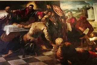 One of Tintoretto's paintings is worth a mention. It's a Last Supper. Every Italian painter worth his oils had to paint one, right? Tintoretto alone has six or seven in Venice, including a glowing light-and-angel-filled one at the Basilica di San Giorgio Maggiore, which is on many tourist agendas. I didn't make it there; it's a dramatic painting but obnoxiously religious, and it requires a boat ride to a separate island.